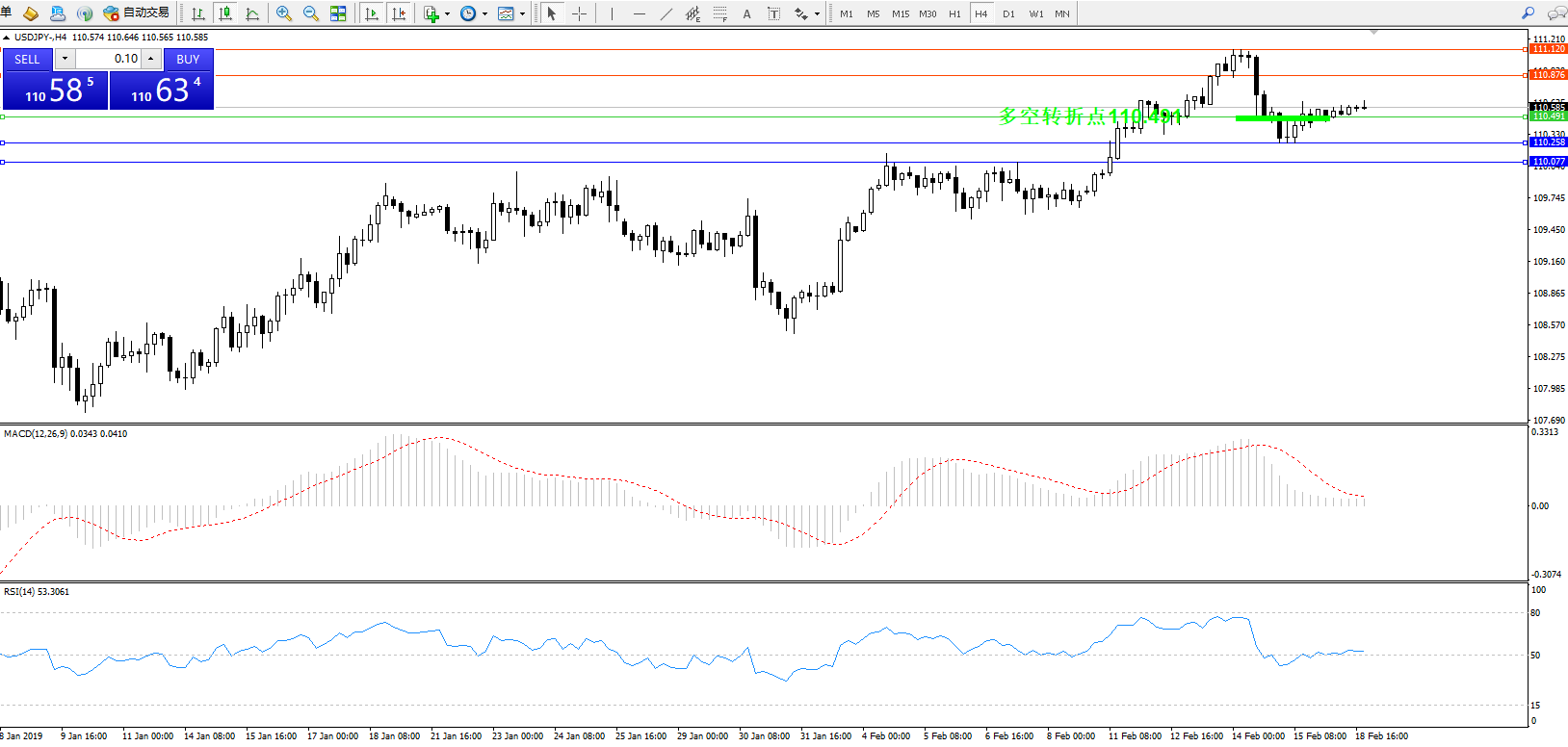 交易策略:110.491上方看涨,目标110.876111.120