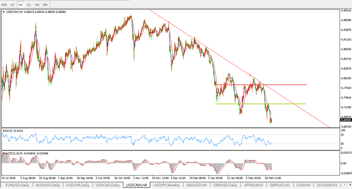 美元兑人民币USDCNH 4小时图: