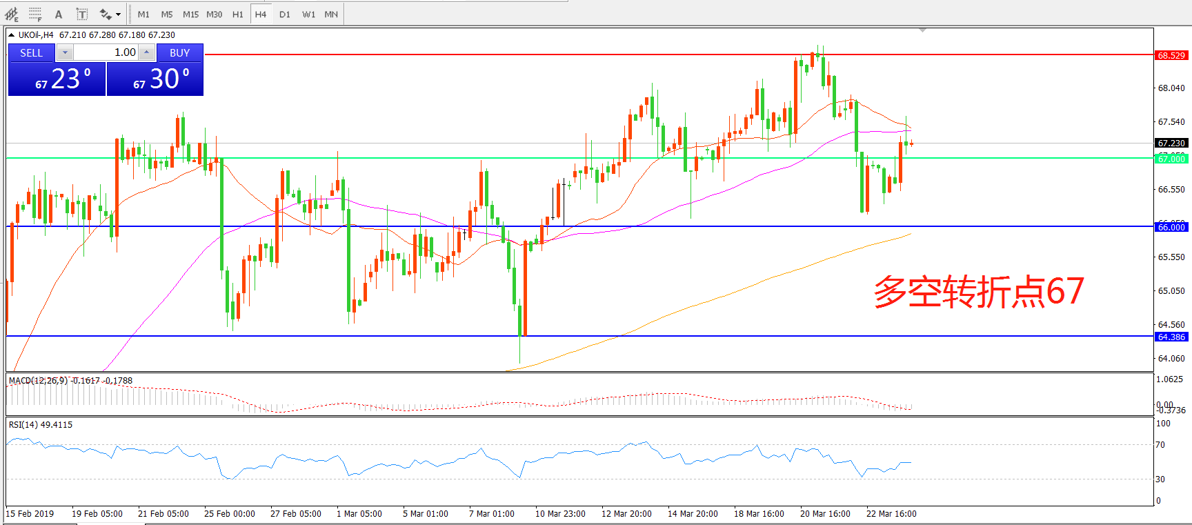 多空转折点:67.00