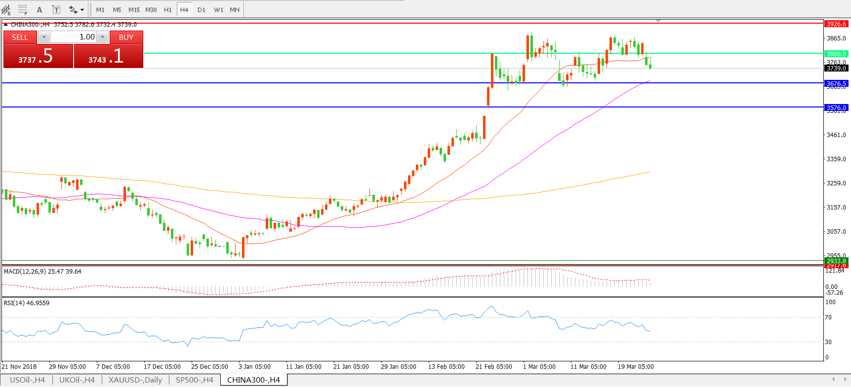 中华指数CHINA300 4小时图