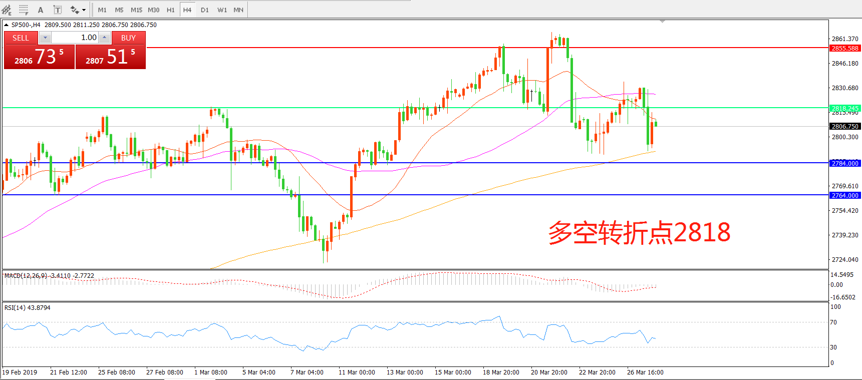 交易策略:在2818之下看跌,目标2784   2764