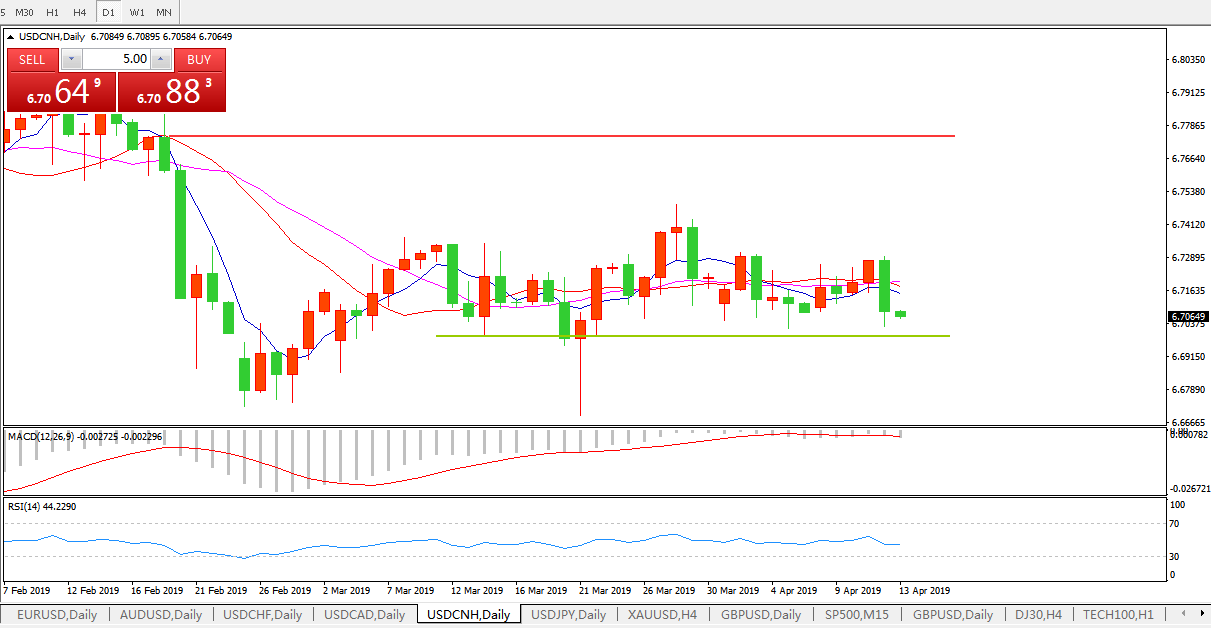 美元兑人民币USDCNH 日线图: