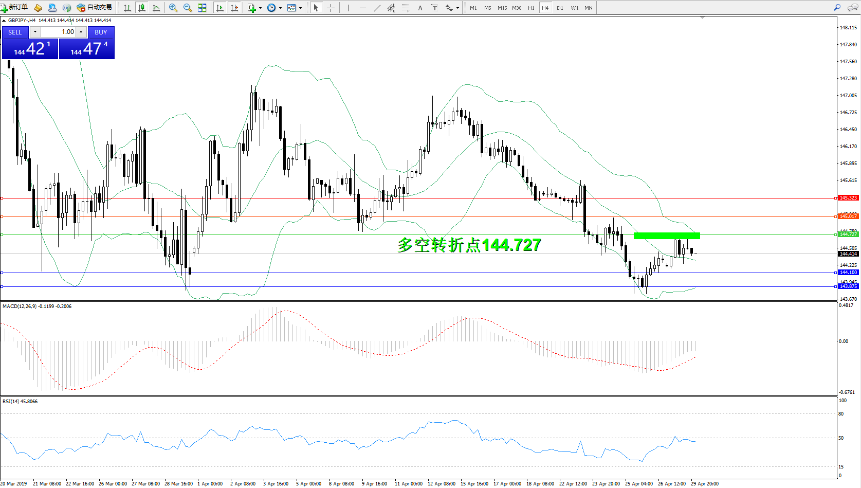 交易策略:144.727下方看跌,目标144.100、143.875