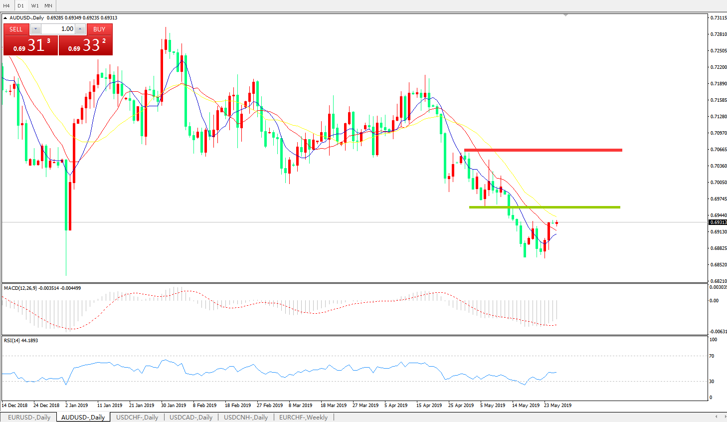 交易策略:在0.6960之下,看跌,目标价位为0.6900,然后为0.6830。