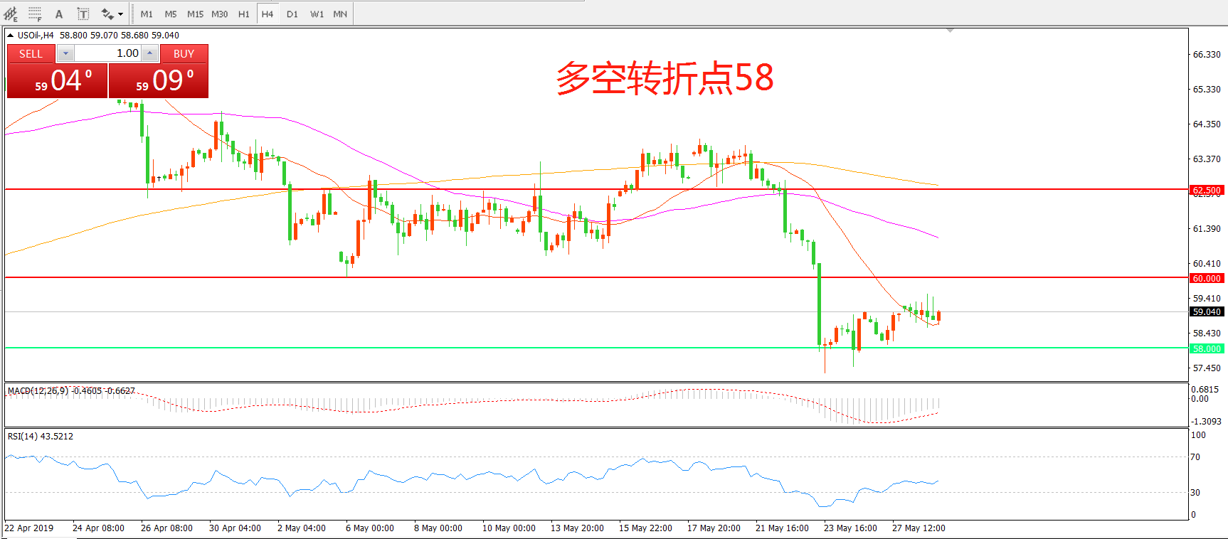 多空转折点:58.00
