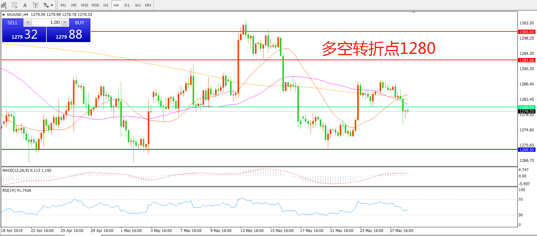 周一,美国总统特朗普在会后与安倍举行的记者会上称,他希望消除贸易壁垒,让美国出口商品在日本享有平等地位。他向日本施压,要求减少日本对美国的巨额贸易顺差。但日本官员已否认两国同意到8月时达成贸易协议。中美方面,特朗普本表示,他将等待时间,并不急于与中国达成贸易协议,但中国国务委员兼外长王毅上周表示,美方如果要将中美经贸磋商建立在不平等的基础之上,中方当然不能接受。任何不平等协议都不可能成立,也不可能得到认同。现货黄金价格走低,最终收报1279.62美元/盎司。