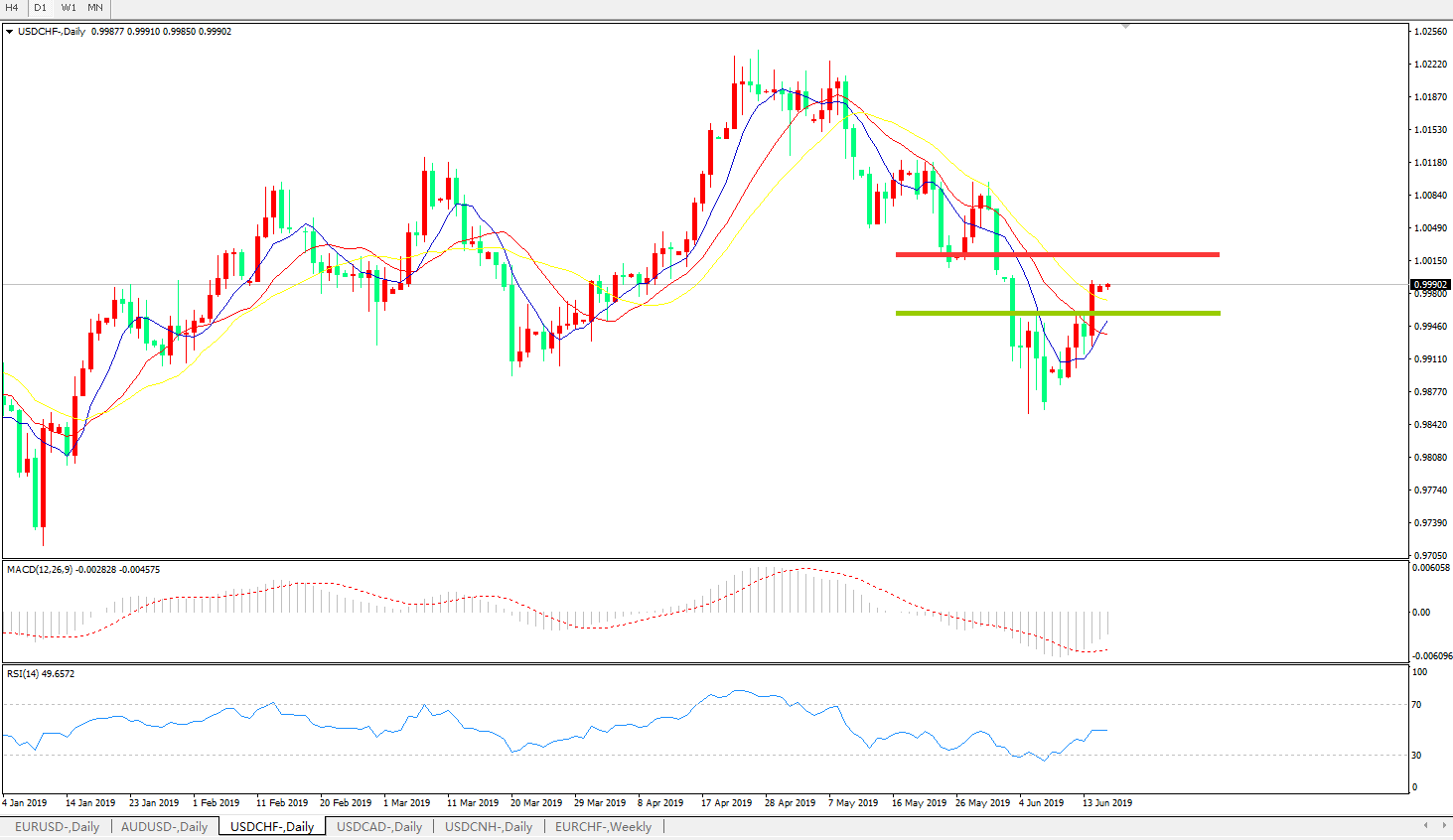 美元兑瑞郎USDCHF 日线图: