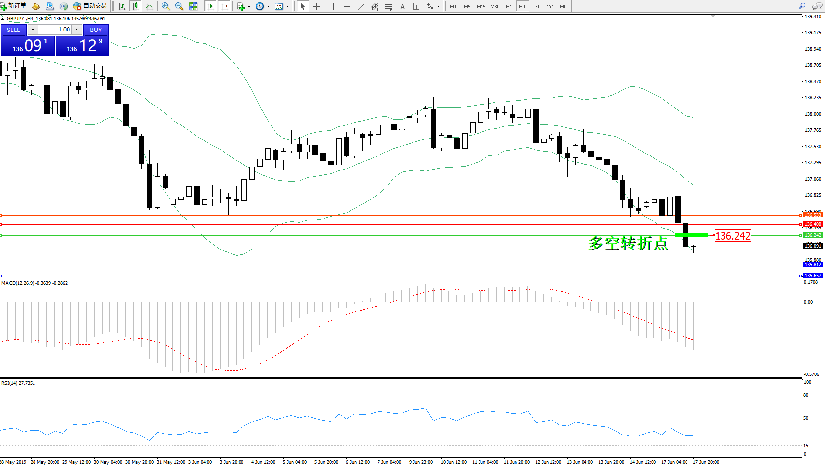 交易策略:136.242下方看跌,目标135.812、135.657