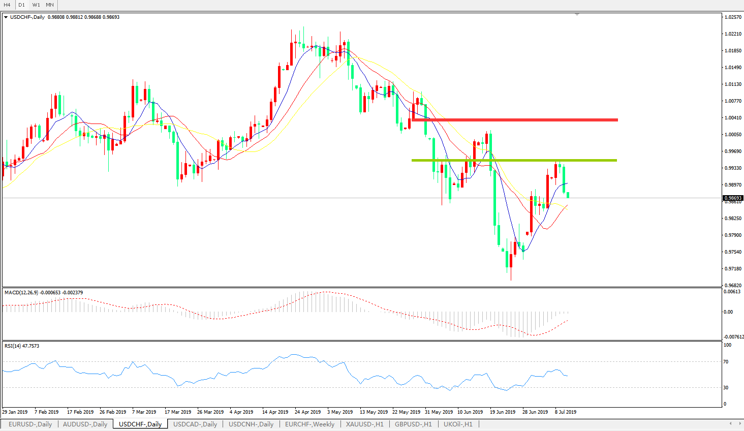 美元兑瑞郎USDCHF 日线图: