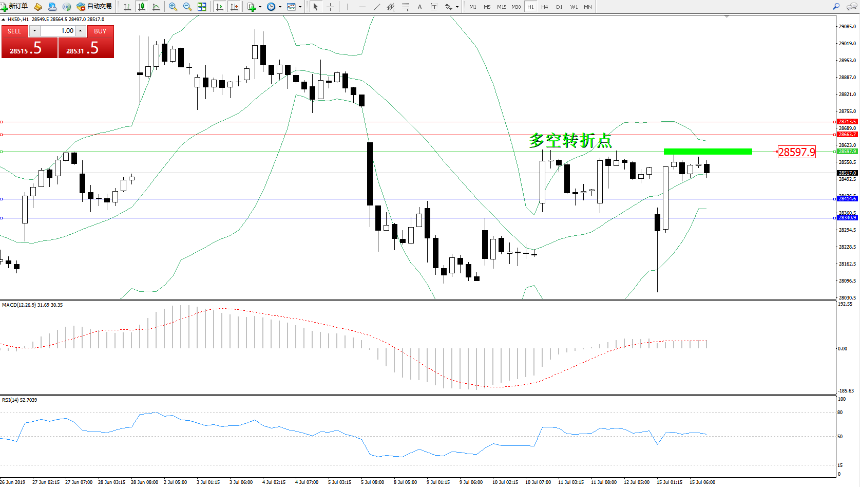 香港恒生指数7月15日(周一)收盘上涨83.26点,涨幅0.29%,报28554.88点;美联储主席鲍威尔的国会证词提高了市场对美联储在7月底降息的预期。市场同时还在关注美国债务上限问题。早上未能受惠外围创新高而造好,恒指低开168点后,再扩大跌幅,低见28071,最多跌超过400点,再迫近28000关口。中国经济二季度增长6.2%,上半年国民经济运行在合理区间,延续了总体平稳、稳中有进发展态势。
