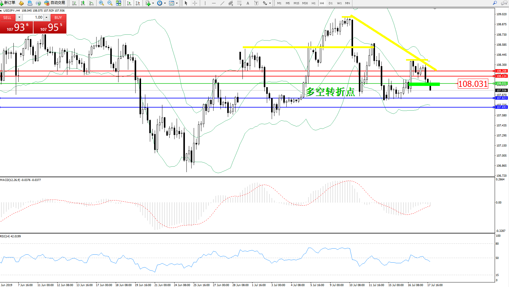 交易策略:108.031下方看跌,目标107.823107.693