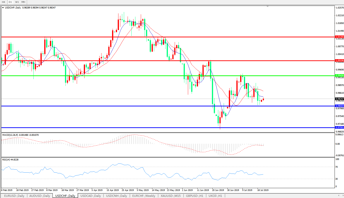 支撑位:0.9800、0.9700