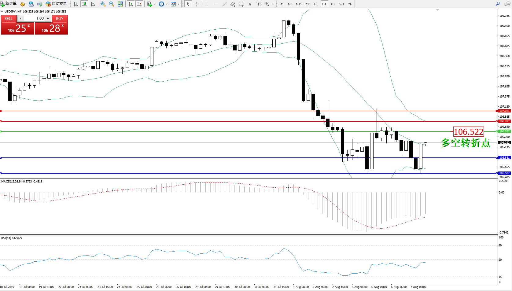 交易策略:106.522下方看跌,目标105.881、105.502