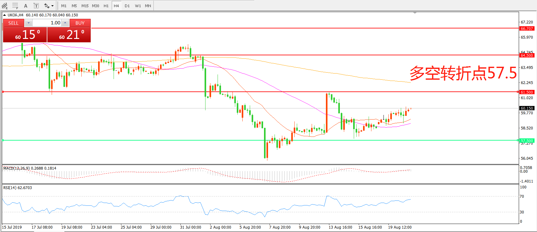 多空转折点:57.50