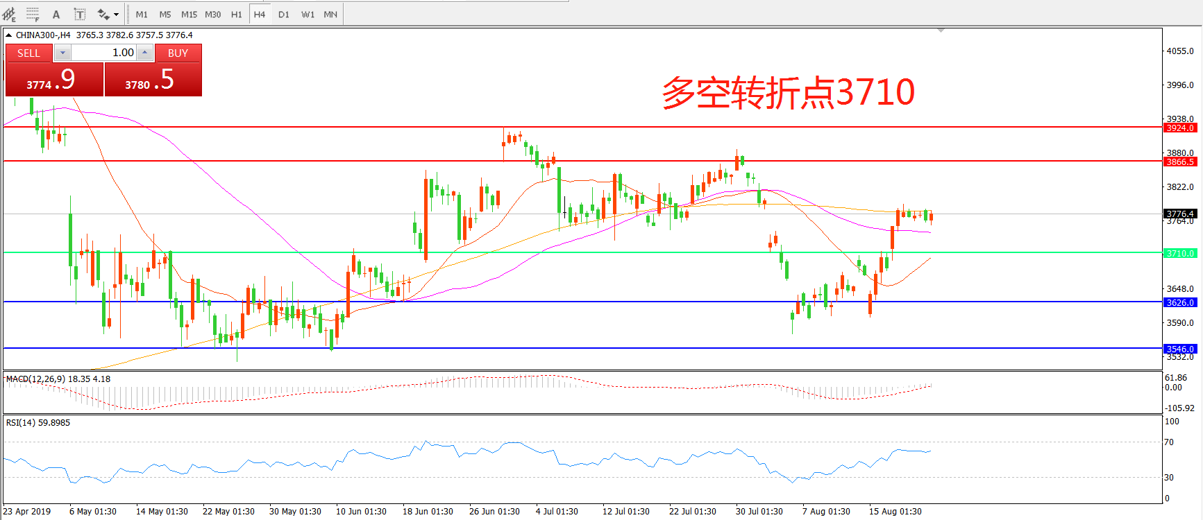 多空转折点:3710.00