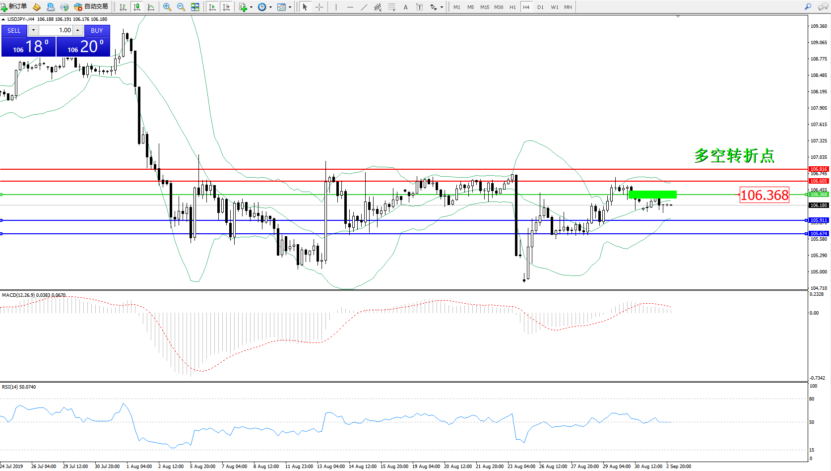 交易策略:106.368下方看跌,目标105.911、105.674