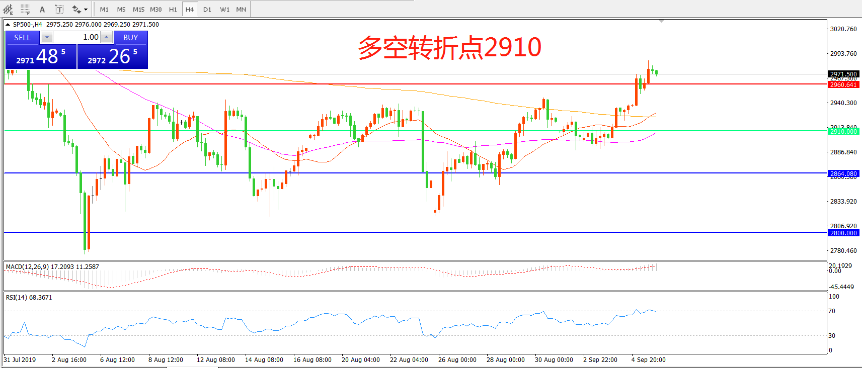 多空转折点:2910.00