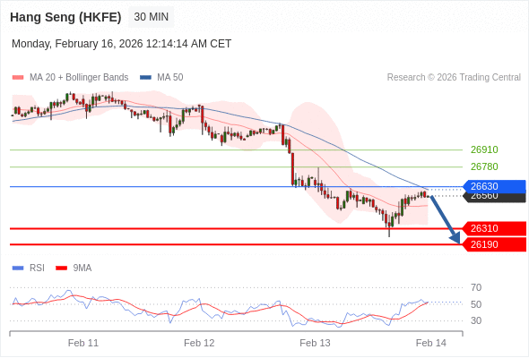 在 26630 之下,看跌,目标价位为 26310 ,然后为 26190 。