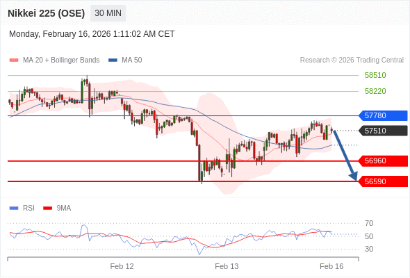 日经225股指期货 (OSE) 当日内: 短期关键阻力位在57780。