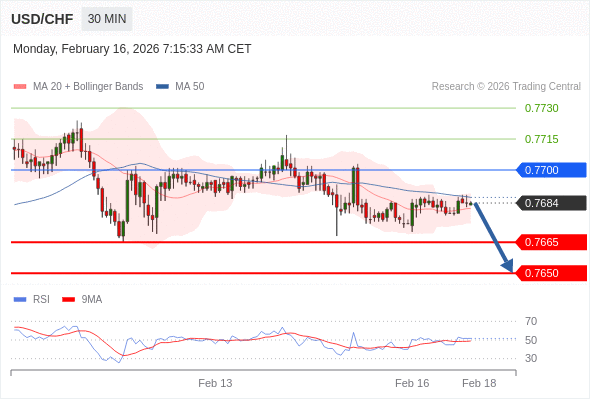 交易策略: 在 0.7700 之下,看跌,目标价位为 0.7665 ,然后为 0.7650 。