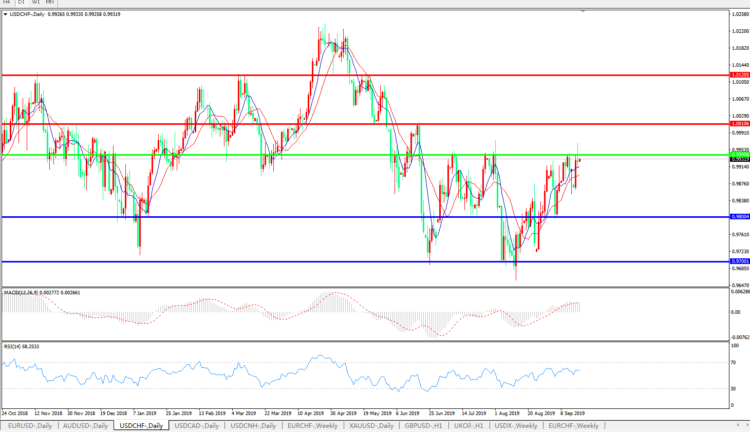 美元兑瑞郎USDCHF 日线图:
