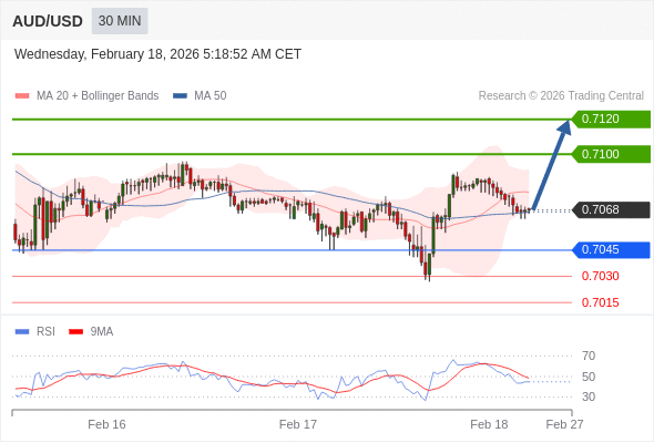 在 0.7045 之上,看涨,目标价位为 0.7100 ,然后为 0.7120 。