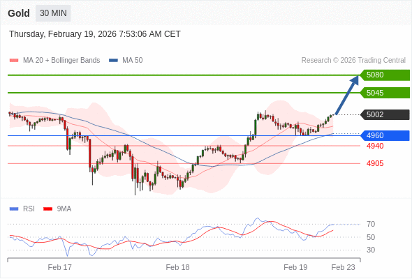 在 4960 之上,看涨,目标价位为 5045 ,然后为 5080 。