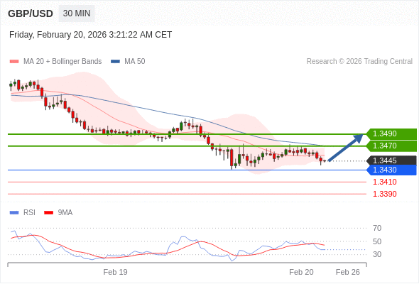 在 1.3430 之上,看涨,目标价位为 1.3470 ,然后为 1.3490 。