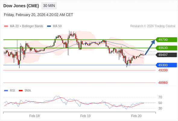 在 49300 之上,看涨,目标价位为 49630 ,然后为 49790 。