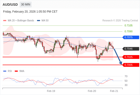 在 0.7075 之下,看跌,目标价位为 0.7025 ,然后为 0.7005 。