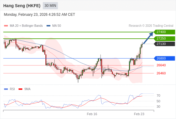 香港恒生指数期货 当日内: 期待27400。