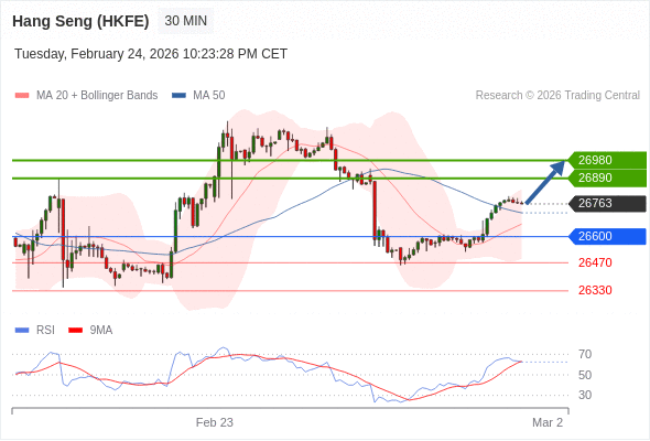 在 26600 之上,看涨,目标价位为 26890 ,然后为 26980 。
