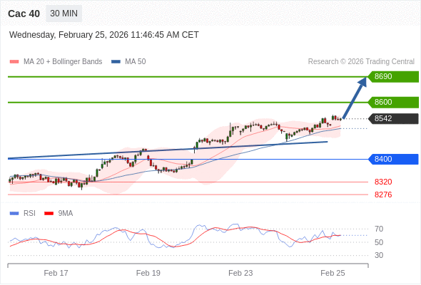 Cac 40 当日内: 新一轮上升。