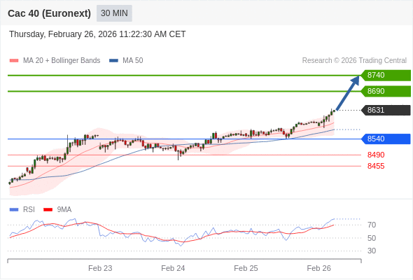 在 8540 之上,看涨,目标价位为 8690 ,然后为 8740 。