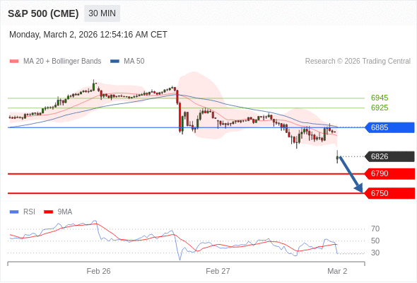 交易策略: 在 6885 之下,看跌,目标价位为 6790 ,然后为 6750 。