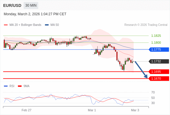 交易策略: 在 1.1775 之下,看跌,目标价位为 1.1695 ,然后为 1.1670 。