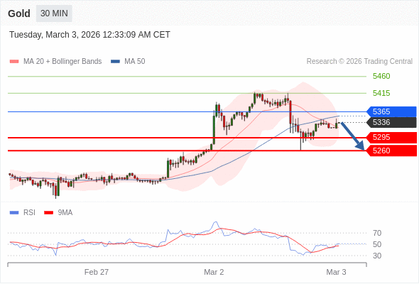 在 5365 之下,看跌,目标价位为 5295 ,然后为 5260 。