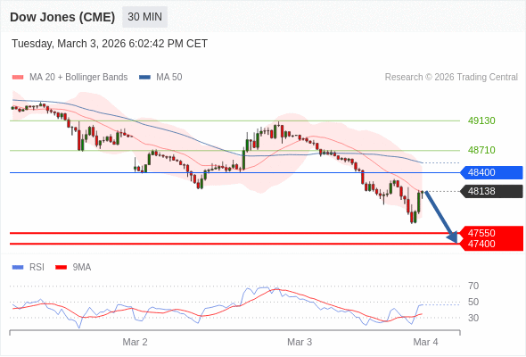 在 48400 之下,看跌,目标价位为 47550 ,然后为 47400 。