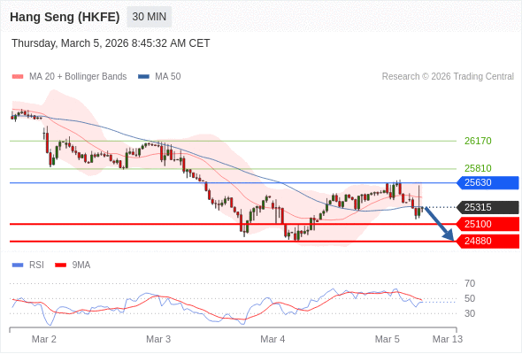 在 25630 之下,看跌,目标价位为 25100 ,然后为 24880 。
