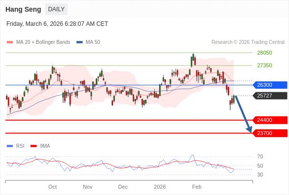 在 26300 之下,看跌,目标价位为 24400 ,然后为 23700 。