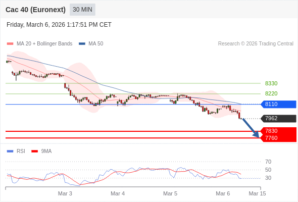 法国CAC指数期货 (Euronext) (H6) 当日内: 期待7830。