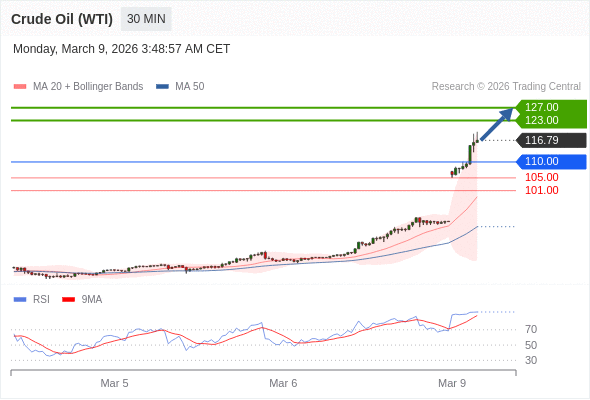 在 110.00 之上,看涨,目标价位为 123.00 ,然后为 127.00 。