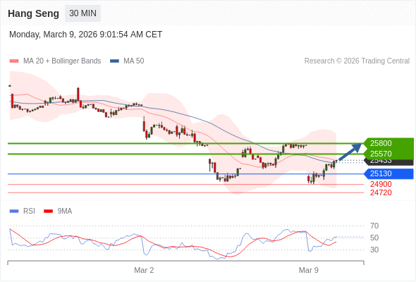 在 25130 之上,看涨,目标价位为 25570 ,然后为 25800 。
