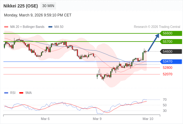 在 53470 之上,看涨,目标价位为 55700 ,然后为 56600 。