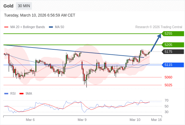 在 5115 之上,看涨,目标价位为 5205 ,然后为 5255 。