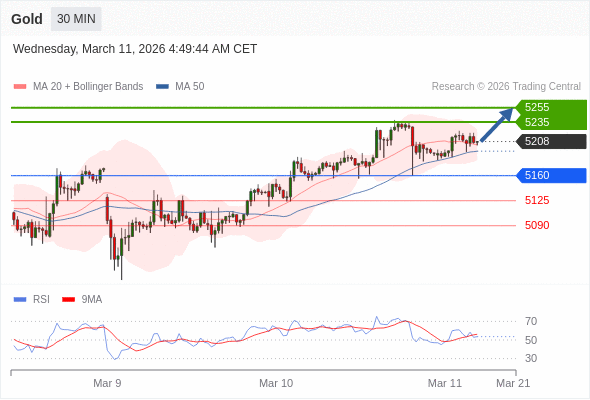 在 5160 之上,看涨,目标价位为 5235 ,然后为 5255 。