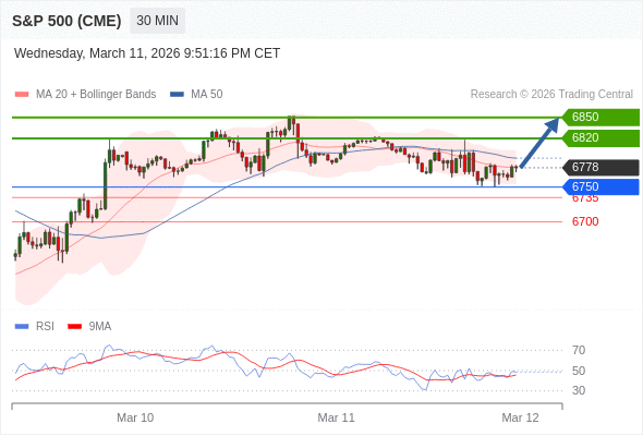 在 6750 之上,看涨,目标价位为 6820 ,然后为 6850 。