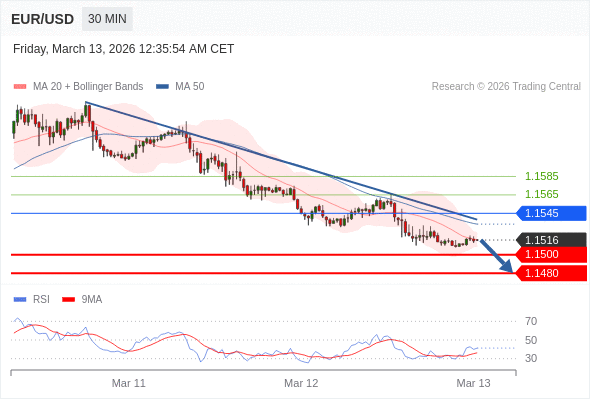 交易策略: 在 1.1545 之下,看跌,目标价位为 1.1500 ,然后为 1.1480 。