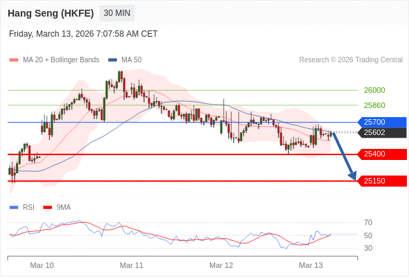 香港恒生指数期货 当日内: 短期关键阻力位在25700。