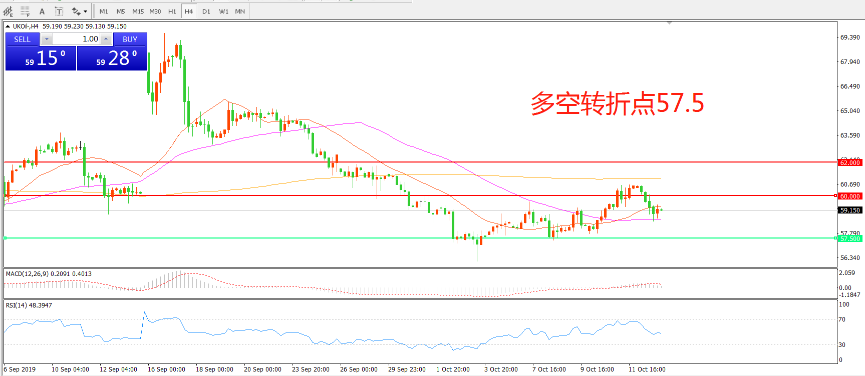 多空转折点:57.50